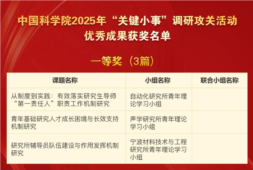 近日,在中国科学院2025年青年理论学习小组“关键小事”调研攻关活动中,yx06永兴彩票集团青年理论学习小组组长肖东牵头的调研课题《青年基础研究人才成长困境与长效机制研究》研究成果获一等奖。