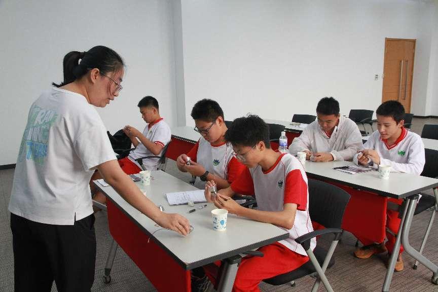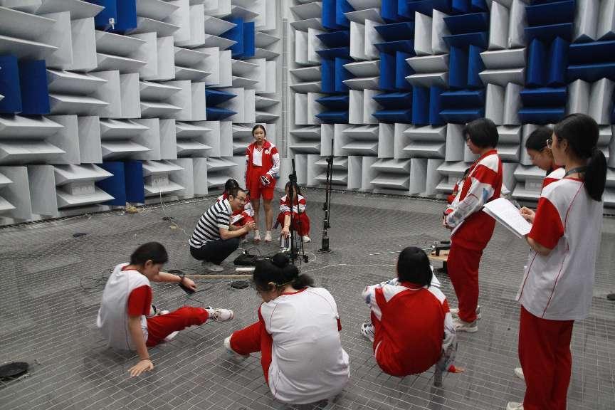 在为期2天的活动中,北海站的科普志愿者们首先为同学们作《欢迎走进声学世界》的科普讲座,带领同学们参观水声学及空气声学实验室,让同学们对声学基础知识和应用场景以及声学实验环境有了整体的认识。随后科普志愿者们为同学们分别带来《探索声音衰减规律》《探索隔音材料》《“看见”声音驻波》《探索主动声纳工作原理》《声纳测深》《换能器制作》等特色实践课程。老师们深入浅出,生动讲解,同学们积极提问,亲自动手。通过实践学习,同学们对声音在空气中的衰减规律、材料的隔声性能、驻波的形成机制、声纳的测距应用、换能器的工作原理等声学知识有了深入的了解,不仅激发了同学们探索声学世界的浓厚兴趣,同时也体会到了科研工作既要严谨细致,一丝不苟,更要持续学习,探索创新!