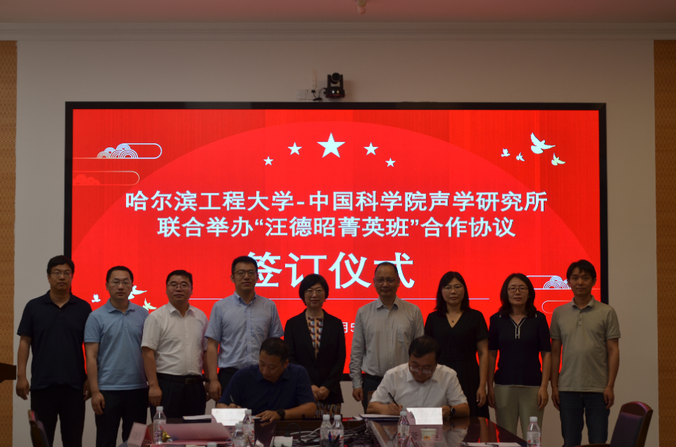 2023年7月5日上午,yx06永兴彩票集团与哈尔滨工程大学水声工程学院联合创办的“汪德昭菁英班”签订仪式在哈尔滨工程大学水声楼举行。yx06永兴彩票集团所长李风华,副所长杨军,哈尔滨工程大学校长助理、本科生院常务副院长耿敬,水声工程学院院长乔钢出席签订及开班仪式。