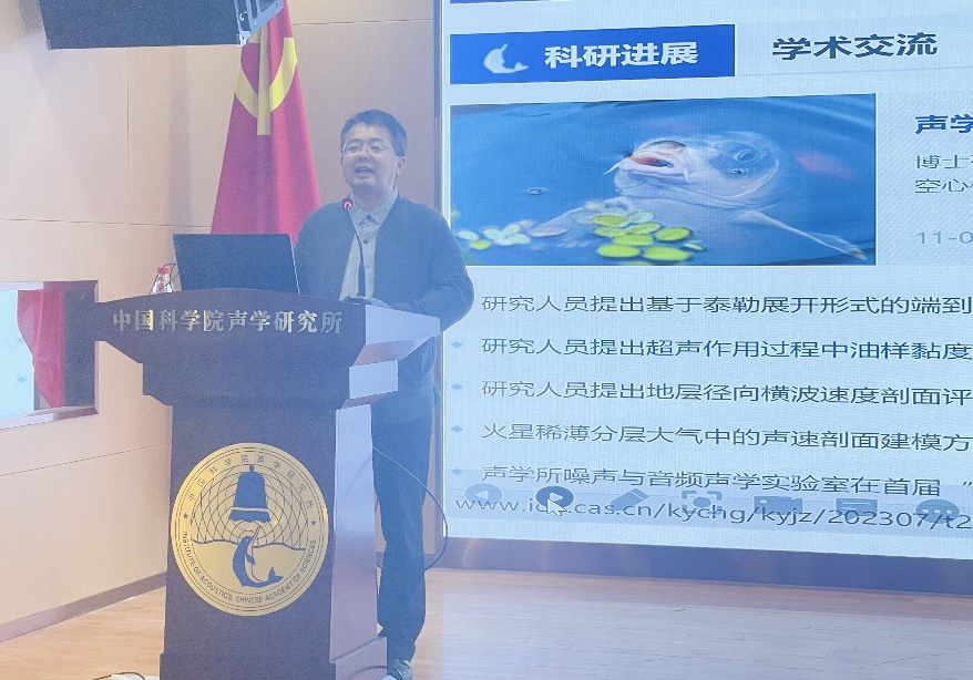 学术委员会主任郭良浩受邀就科学家精神作报告,在报告中分享了对科研工作的心得体会。他指出,作为从事声学领域的科研人员,要选择有前景的研究领域,尤其要培养提出问题的能力,以问题为导向发挥创造性想象,以兴趣为引领,持续努力做好准备,最终抓住机遇实现突破。他指出,科学成就离不开精神支撑,他以共和国勋章获得者、中国核潜艇之父黄旭华老一辈科学家埋头科研、甘心做沉默的砥柱献身科学事业,勉励新职工要以榜样为引领,汲取精神力量,传承和弘扬科学家精神,争做堪当科技强国重任的时代新人。