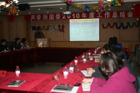 首先,由所团委书记张云鹏做2010度总结报告。张云鹏在报告中指出,2010年所团委的工作主要从:“塑造品牌活动”、“推出系列活动”、“提升活动层次”、“围绕中心工作”四个方面进行,他以丰富翔实的资料和照片生动地展示了所团委一年来所开展的多姿多彩的活动,充分展现了广大青年团员风采与精神面貌。
