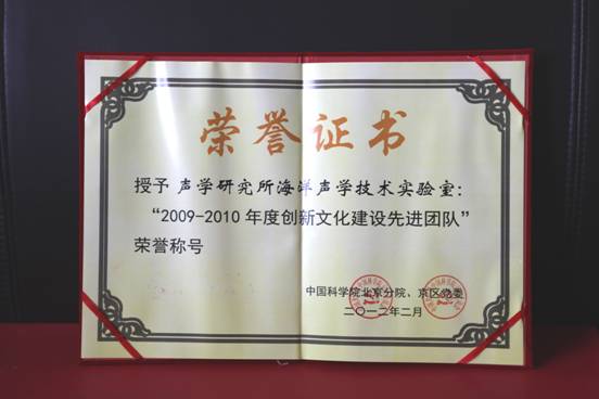 近日,在刚刚结束的北京分院工作会议上,对创新文化建设中做出优异成绩的团队和个人进行了表彰。yx06永兴彩票集团海洋声学技术实验室榜上有名,被北京分院授予“2009-2010年度创新文化建设先进团队”荣誉称号。