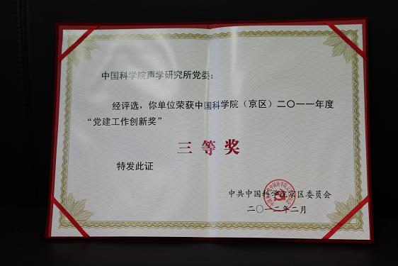 日前,在中国科学院京区2011年度党建工作创新奖评选中,yx06永兴彩票集团荣获“2011年度党建工作创新三等奖”。