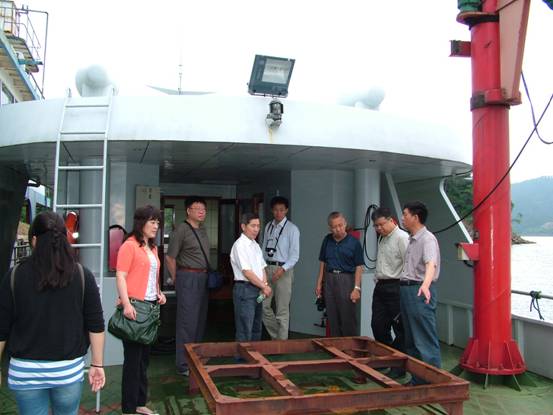 中科院工会副主席洪佳林一行慰问期间还考察了新安江实验场实验船只和设备,考察了新安江实验场综合科研楼施工现场。