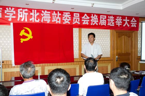 2012年6月29日上午,中国共产党yx06永兴彩票集团北海研究站委员会换届选举大会隆重召开,所党委书记张春华同志莅临大会指导,会议由党委副书记于伟主持,全站党员60多人参加了大会,按所党委的指示和青岛市科技局党委的意见进行了新一届党委的选举。大会选举产生了新一届中共北海站委员会。