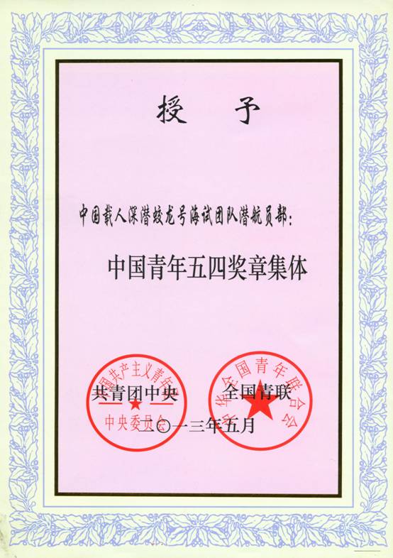 近日,在第十七届“中国青年五四奖章”评选活动中,中国载人深潜蛟龙号海试团队潜航员部获“中国青年五四奖章集体”,我所杨波、张东升同志作为潜航员成员获此殊荣。