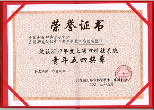 近日,共青团上海科工委为树立典型、表彰先进,激励上海科技系统青年积极投身科技创新事业,召开了上海市科技系统“五四”表彰大会,表彰了一批上海市科技系统内在科技工作和团青工作中表现突出的先进集体和优秀个人。东海站仿生耳与声音技术实验室团队被评为2012年度“上海市科技系统青年五四奖章(集体)”。