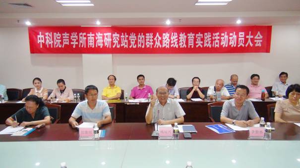 9月5日,南海研究站召开党的群众路线教育实践活动动员大会,对全站教育实践活动进行动员和部署。南海研究站党政领导班子成员、在职职工、各支部书记、党员、入党积极分子共计40余人参加了会议。yx06永兴彩票集团党的群众路线教育实践活动督导组倪宏、王秀明同志莅会指导,会议由党委委员张镇迈主持。