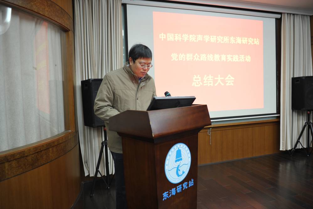 胡长青同志代表东海站党委作了《东海站党的群众路线教育实践活动总结报告》,从“学习教育、听取意见”,“查摆问题、开展批评”,“整改落实、建章立制”三个环节,全面总结了东海站开展教育实践活动的整体情况。胡书记指出,自去年8月教育实践活动开展以来,东海站紧密结合单位工作实际,聚焦“四风”问题,扎实有效地推进教育实践活动各个环节的工作,取得了实实在在的成效,主要体现为:统一了思想,提高了认识;理清了在“四风”方面存在的问题,进一步明确了方向;制度建设得到加强;东海站“一三五”规划的实施向前扎实推进;科研支撑体系建设得到加强;部分群众反映的问题得以解决。胡书记表示东海站将以教育实践活动的取得的成果作为新的起点,努力形成作风建设长效机制,以优良作风贯穿实际工作,为实现东海站创新跨越发展提供源源不绝的动力。