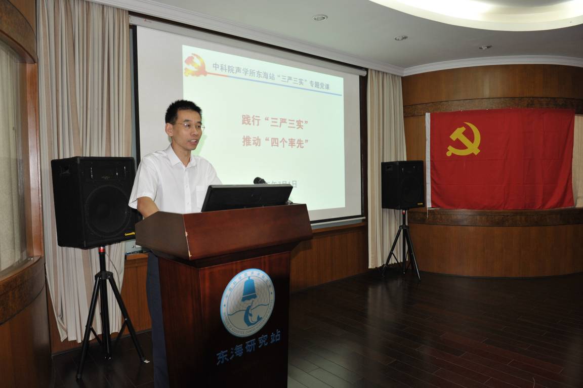 2015年7月1日,东海研究站庆祝建党94周年暨“三严三实”专题党课报告会隆重召开。会议由副站长许伟杰同志主持。