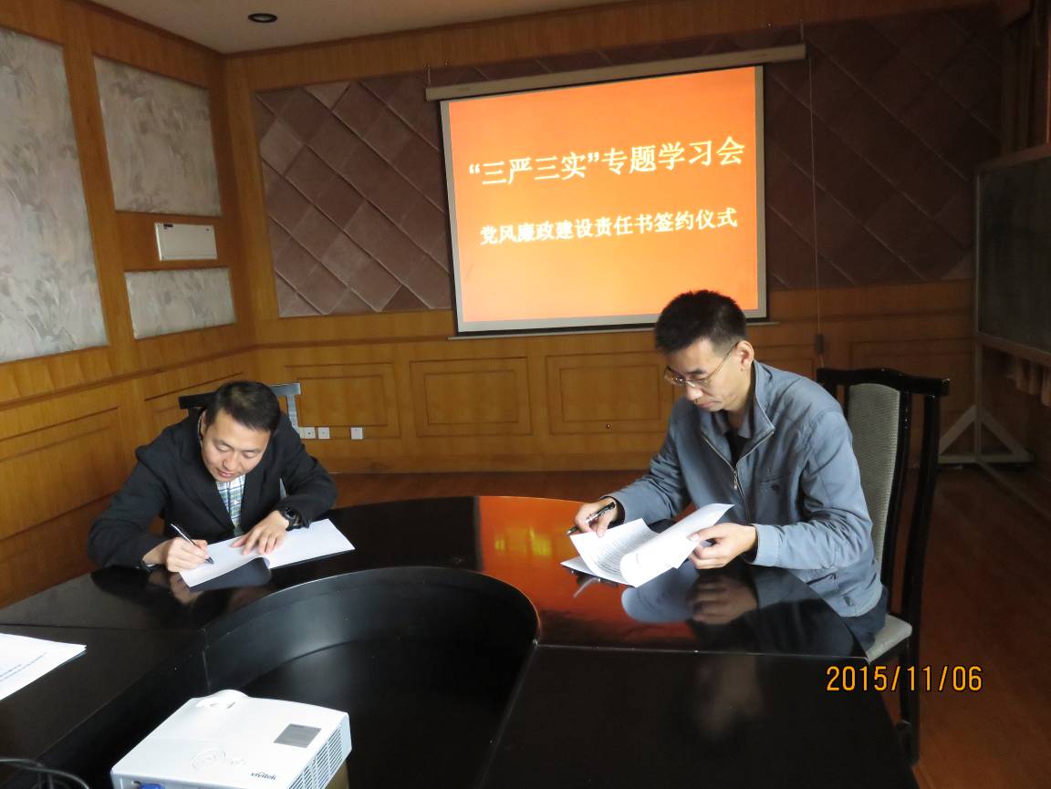 为全面贯彻落实从严治党要求,巩固和拓展党的群众路线教育实践活动成果,持续推进思想政治建设和作风建设,东海站党委于11月6日上午组织开展“三严三实”专题学习会暨党风廉政建设责任制签约仪式,站领导班子成员、中层及以上管理干部、课题组长和党支部书记等近20名同志参加了学习会。会议由党委书记、站长胡长青主持。