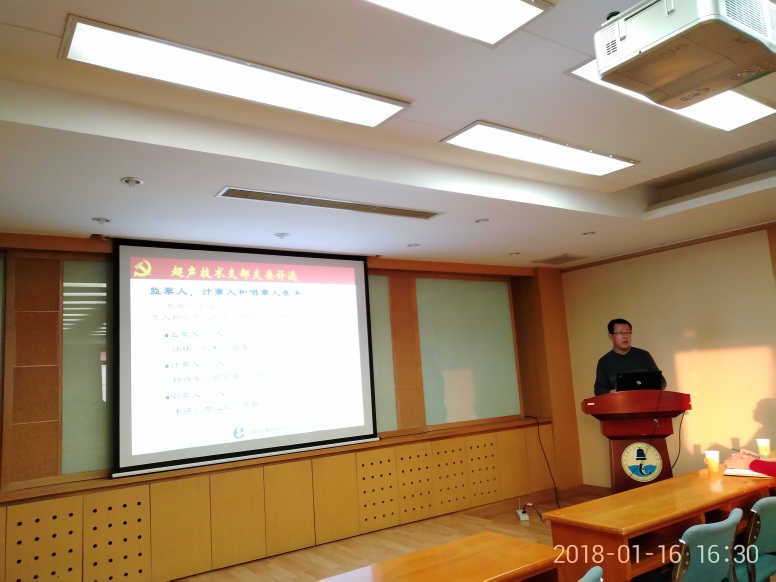 2018年1月16日下午,超声技术支部召开党员大会,学习贯彻十九大精神。yx06永兴彩票集团党委副书记、纪委书记李浩然和支部71名党员参加了会议。会议由支部副书记李俊红主持。