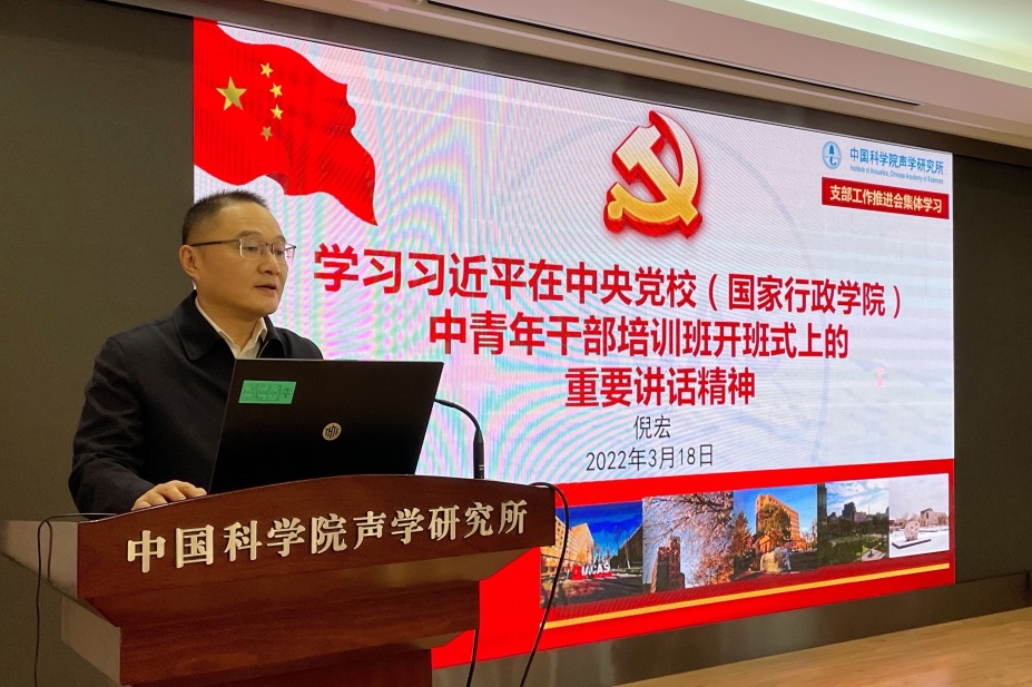 会议进行了微党课交流。水下信息技术党总支书记田杰、海洋声学技术党总支书记张向军、超声学党总支书记陈德华分别以《担当“2022”——学习院、所工作会议精神》《深入学习领会习近平总书记关于新时代科技创新的几个重要论断》《围绕“强基础抓攻关 聚人才促改革”发挥支部党建工作效能的一点思考》为题,围绕习近平总书记关于科技创新和对我院重要指示批示精神以及中科院2022年工作会议精神,结合部门实际,聚焦“担当2022”所工作主题,做了专题党课报告。
