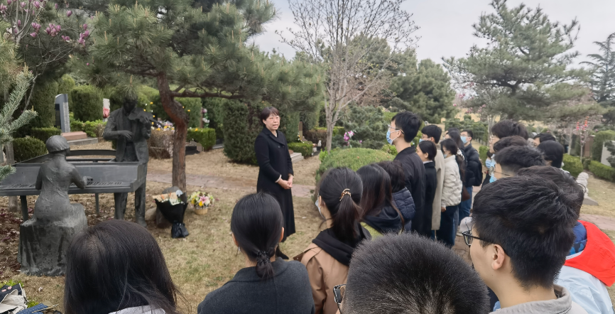 在陵园门口,同志们自觉排成两路纵队有序进入,行至汪先生的墓碑前,大家仔细擦拭了汪德昭院士及其夫人李惠年先生的铜像及墓碑。师生代表敬献了花篮,并集体向汪先生和李先生三鞠躬,以表达崇敬与悼念之情。