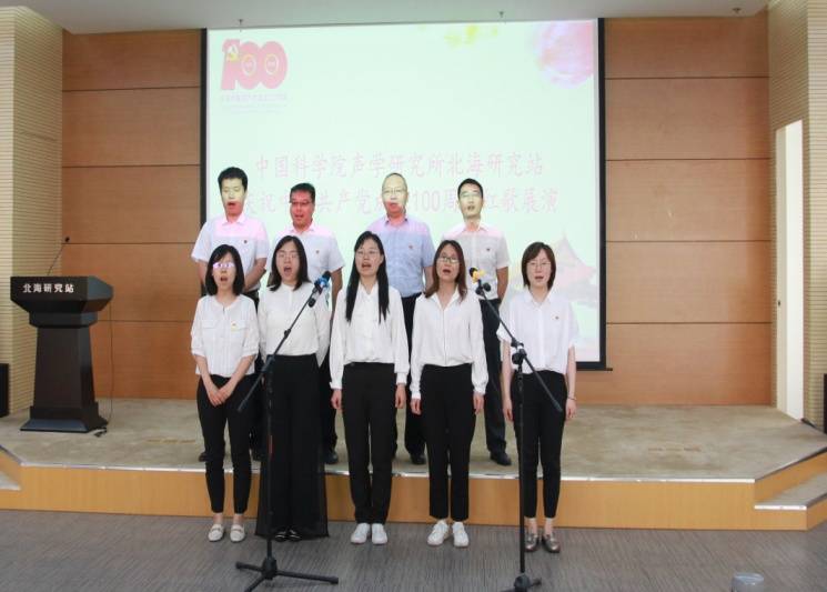 2021年6月29日,北海研究站庆祝中国共产党成立100周年红歌展演活动在高新区新园区举行,广大职工用歌声表达对党的无限热爱和美好祝福,激励全站上下不忘初心、牢记使命,以更加奋发有为的姿态投身科技报国的生动实践。北海站领导、职工和学生50余人参加展演活动。