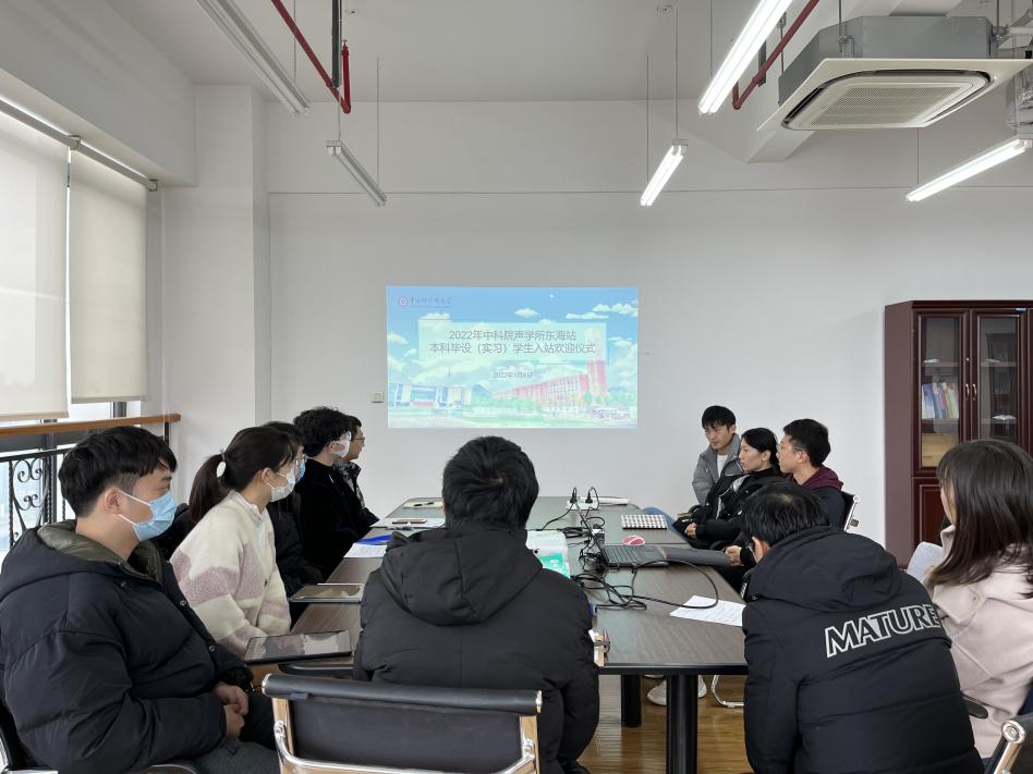 2022年1月6日,yx06永兴彩票集团东海研究站举办2022年度联培与推免本科毕设(实习)学生入站欢迎仪式。水声工程研究室洪峰副研究员主持,人教科翁汝莲、超声技术研究室陈友元副研究员,推免与联培相关本科学生以及在读研究生参加了本次会议。