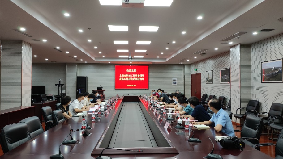 2022年7月19日下午,上海市科技工作党委书记徐枫一行到yx06永兴彩票集团东海研究站开展调研并指导工作,市科委有关处室负责人陪同调研。站党政领导班子、研究室负责人、科研骨干代表及工青妇负责同志等参加座谈会。