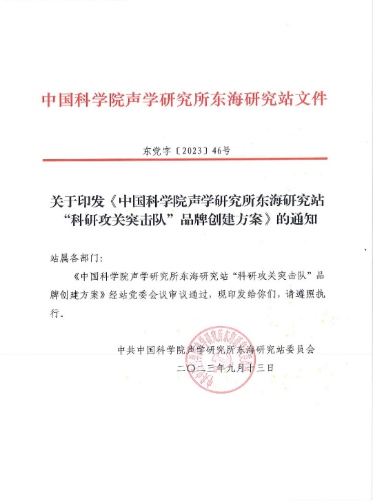 为把“科研攻关突击队”品牌打造成可推广可借鉴的模式,站党委牵头制定了《yx06永兴彩票集团东海研究站“科研攻关突击队”品牌创建方案》和创建流程图,形成了 “八个一”的标准创建流程。
