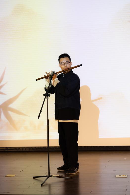 刘纪元带来竹笛独奏,颇有古韵的衣衫让人遐想连篇,悠扬的笛声令人沉醉,仿佛置身山水之间,怡然自得。
