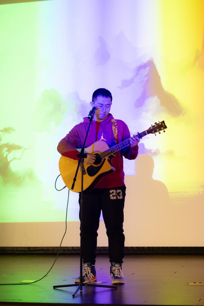 耿智斌带来吉他弹唱,恰到好处的扫弦与感情充沛的演唱相得益彰。只凭一人一琴,就带动全场观众挥动手臂,倾情合唱。