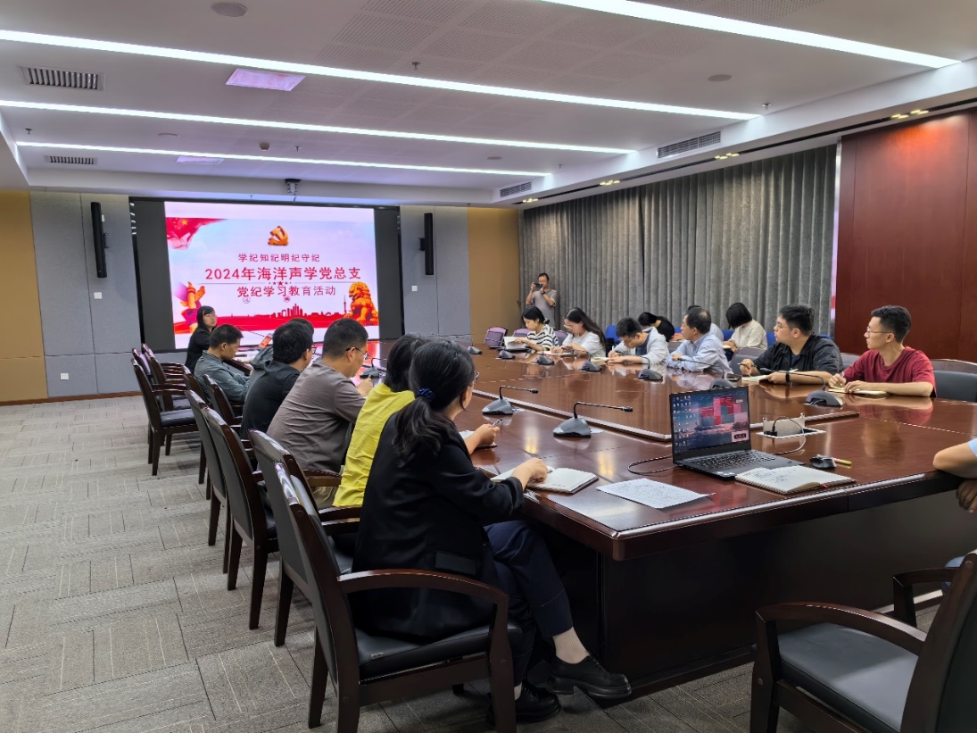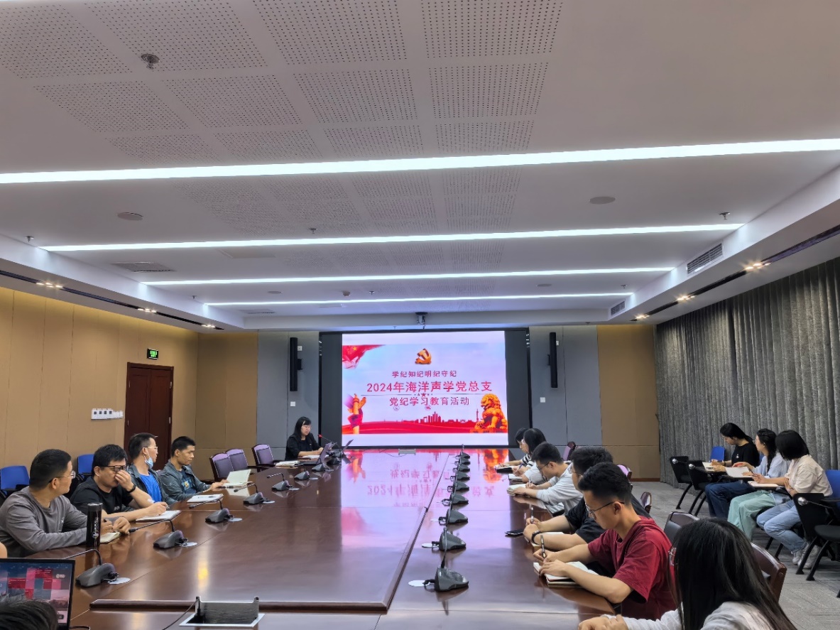 2024年5月24日下午,海洋声学技术党总支在新科研楼1504会议室召开党员大会,开展党纪学习教育,会议由党总支书记杨娟主持。