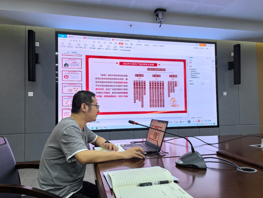 会议向与会党员讲授主题为“学纪知纪明纪守纪,聚力科研行稳致远”的纪律专题党课。杨娟带领全体党员深入学习贯彻习近平总书记关于党的纪律建设的重要讲话精神,传达中共中央办公厅印发的《关于在全党开展党纪学习教育的通知》,强调党纪学习教育要注重融入日常、抓在经常,希望全体党员通过党纪学习教育党课,把遵规守纪牢记在心,内化为言行准则,始终做到忠诚干净担当。