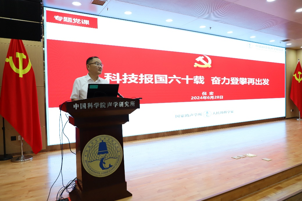 庆祝大会在庄严的国歌声中开幕。党委书记倪宏以《科技报国六十载 奋力登攀再出发》为题作专题党课报告,围绕“103:百炼成钢,严守纪律规矩,从胜利走向胜利”“75:乘风破浪,坚守为民初心,风雨无阻向前进”“60:砥砺同行,矢志科技报国,奋力登攀再出发”等三部分进行详细阐述。