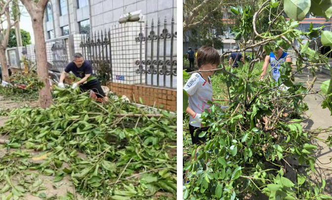 为尽快恢复正常生产生活,台风过后,站领导带领职工、学生和物业人员克服种种困难,第一时间组织力量,立即开展灾后自救,经过大家齐心协力,完成了路障清理,保障了各项工作正常开展。