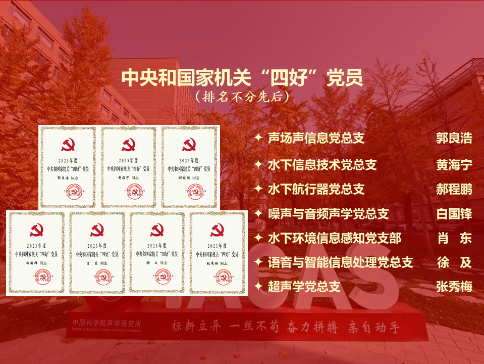 近日,中央和国家机关工委印发《中央和国家机关工委关于评定2023年度中央和国家机关“四好”党员的决定》。郭良浩、黄海宁、郝程鹏、白国锋、肖东、徐及、张秀梅(排名不分先后)等7名党员被授予中央和国家机关“四好”党员称号。