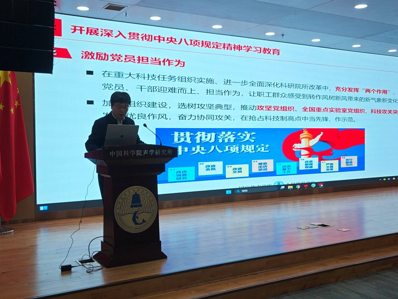 朱敏带领大家共同学习了中央八项规定和中央八项规定精神,重点从“八项规定是什么”“八项规定目标要求是什么”以及“如何开展八项规定学习教育”。他鼓励与会人员要进一步聚焦主责主业、强化使命担当,凝心聚力、干事创业,为加快抢占科技制高点提供有力保障。