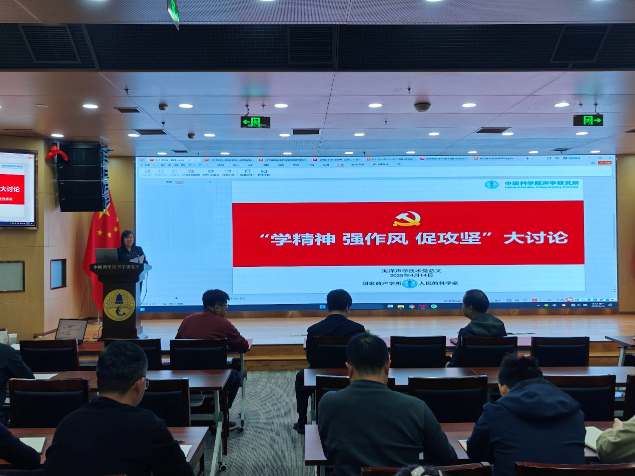 2025年4月14日,海洋声学技术党总支召开扩大会议,实验室主任朱敏等全体职工参加会议,党委委员马晓川出席会议。会议由党总支书记杨娟主持。