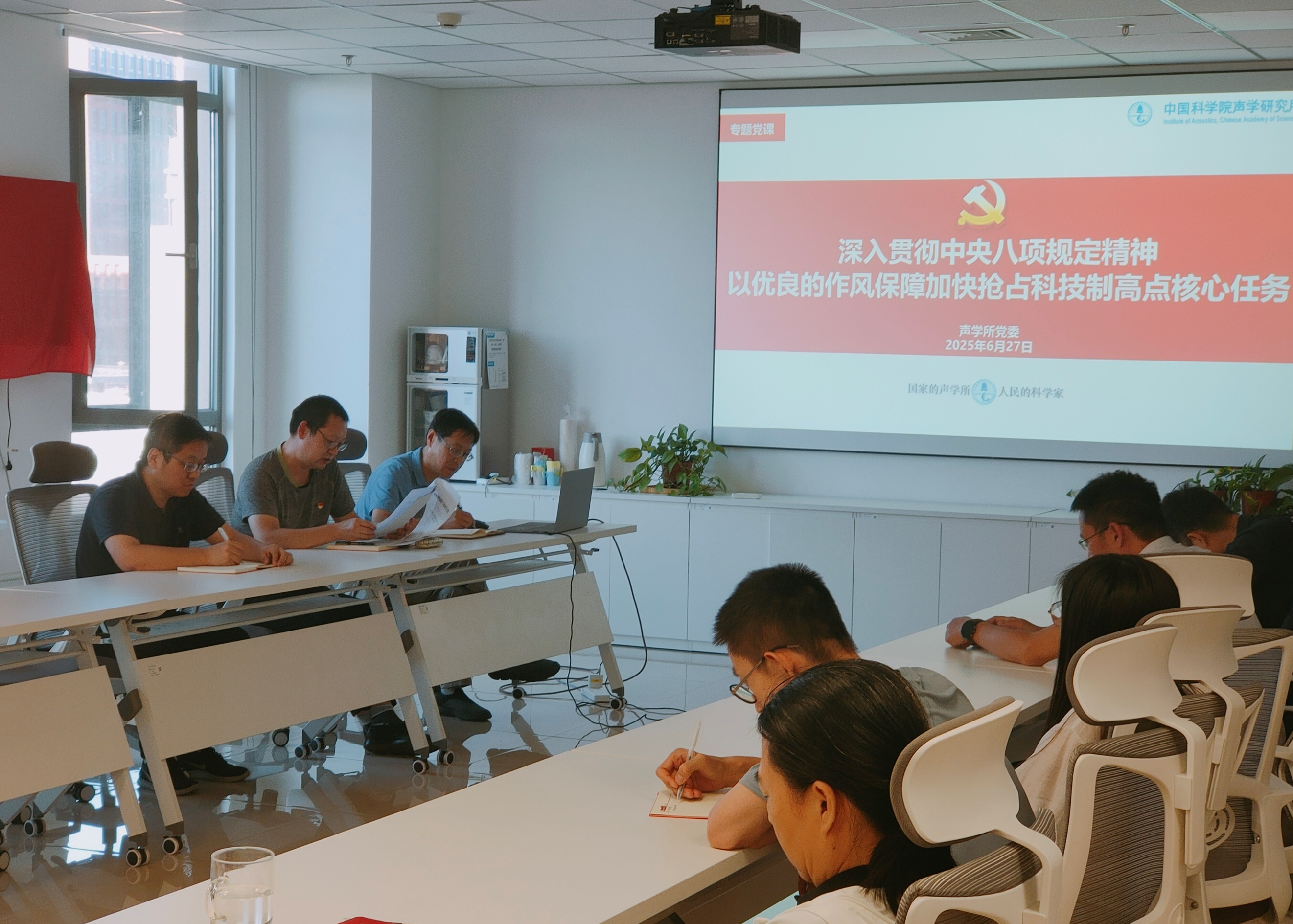刘明刚带领与会党员学习了《深入贯彻中央八项规定精神 以优良的作风保障加快抢占科技制高点核心任务》专题党课与《党政机关厉行节约反对浪费条例》。他强调,党员同志要在日常生活中贯彻落实中央八项规定精神,厉行勤俭节约,反对铺张浪费,让优良作风在新时代科技攻关中熠熠生辉。