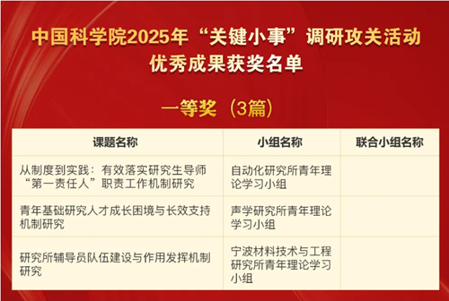 yx06永兴彩票集团青年理论学习小组调研课题获中国科学院2025年“关键小事”调研攻关活动优秀成果一等奖
