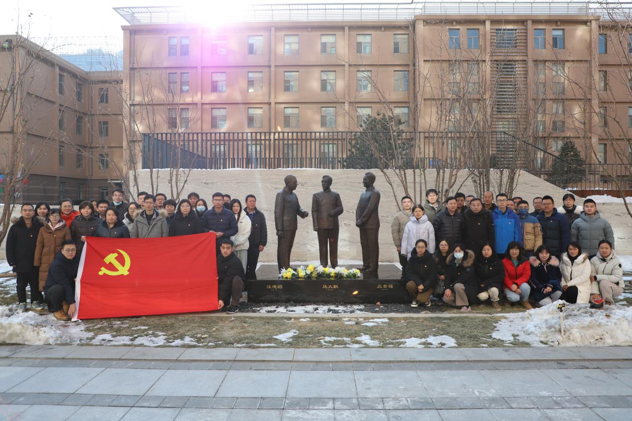 张莉带领大家深切缅怀三位老科学家的丰功伟绩,感悟思想光芒,汲取奋进力量,瞻仰“汪德昭 马大猷 应崇福”院士塑像,全体同志向塑像三鞠躬。在塑像前,邢宇、李剑剑、杨浩三位同志分别诵读三位老科学家的经典话语,聆听老科学家谆谆教诲。六位献花代表向老科学家献花,向他们表达追思与敬意。