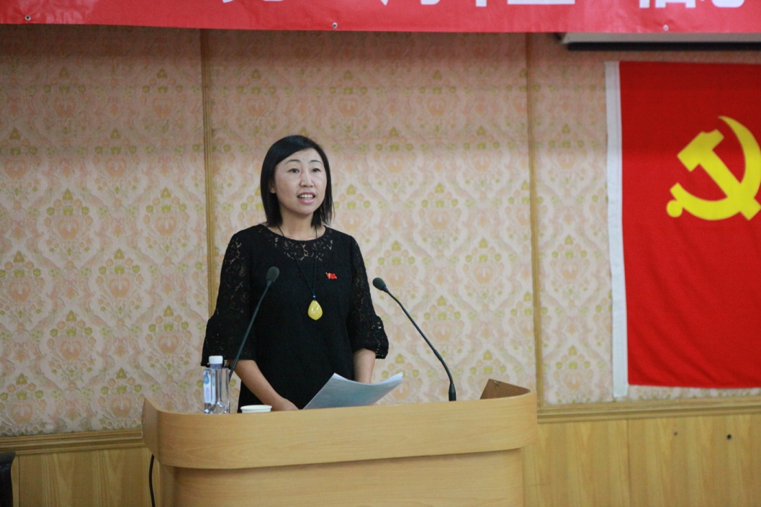 面对鲜红的党旗,党委委员李双田带领全体党员重温入党誓词。“为共产主义奋斗终身,随时为党和人民牺牲一切,永不叛党。”铿锵有力的誓言在会场上激荡,全体党员又一次受到了精神洗礼。