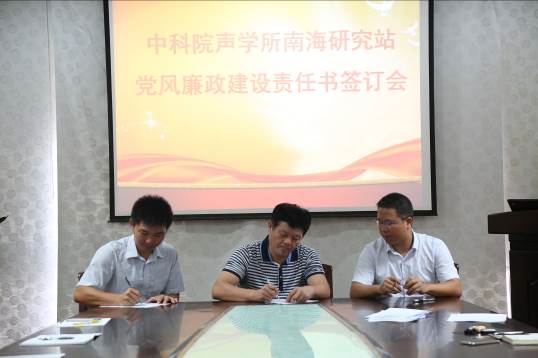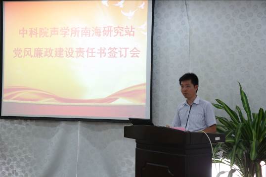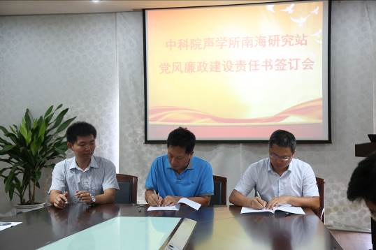 2017年8月7日下午,南海站党委组织召开党风廉政建设责任书签订会。站党政领导班子成员、各部门负责人、各支部书记及海口本部在职党员、预备党员、入党积极分子共计二十余人参加会议,会议由站党委书记张镇迈同志主持。