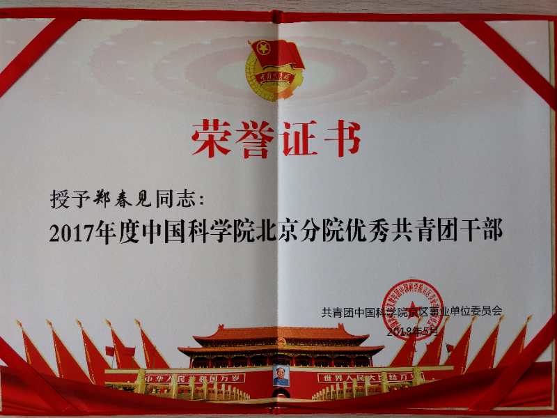 在5月3日举办的中国科学院团委五四青年节主题活动上,yx06永兴彩票集团超声技术中心团支部荣获2017年度“中国科学院五四红旗团支部”荣誉称号,郑春见同志荣获2017年度“中国科学院优秀共青团干部”荣誉称号。此外,超声技术中心团支部还荣获2017年度“中国科学院北京分院五四红旗团支部”荣誉称号,郑春见同志荣获2017年度“中国科学院北京分院优秀共青团干部”荣誉称号,胥利文同学荣获2017年度“中国科学院北京分院优秀共青团员” 荣誉称号。