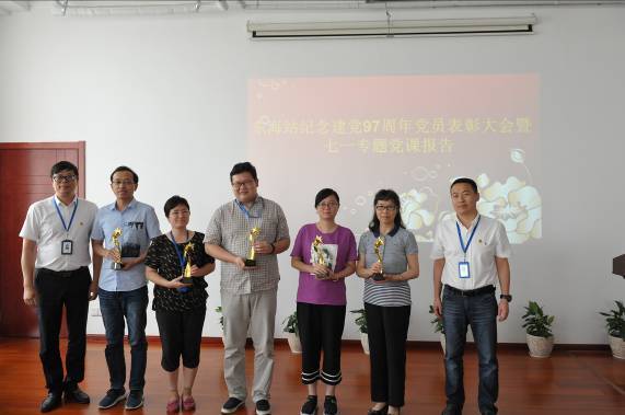 2018年,中国共产党成立97周年,6月29日下午东海站党委组织纪念建党97周年党员表彰大会暨“七一”专题党课报告,全体在职党员、退休党员代表和研究生党员参加了会议。大会由党委副书记、纪委书记丁培主持。