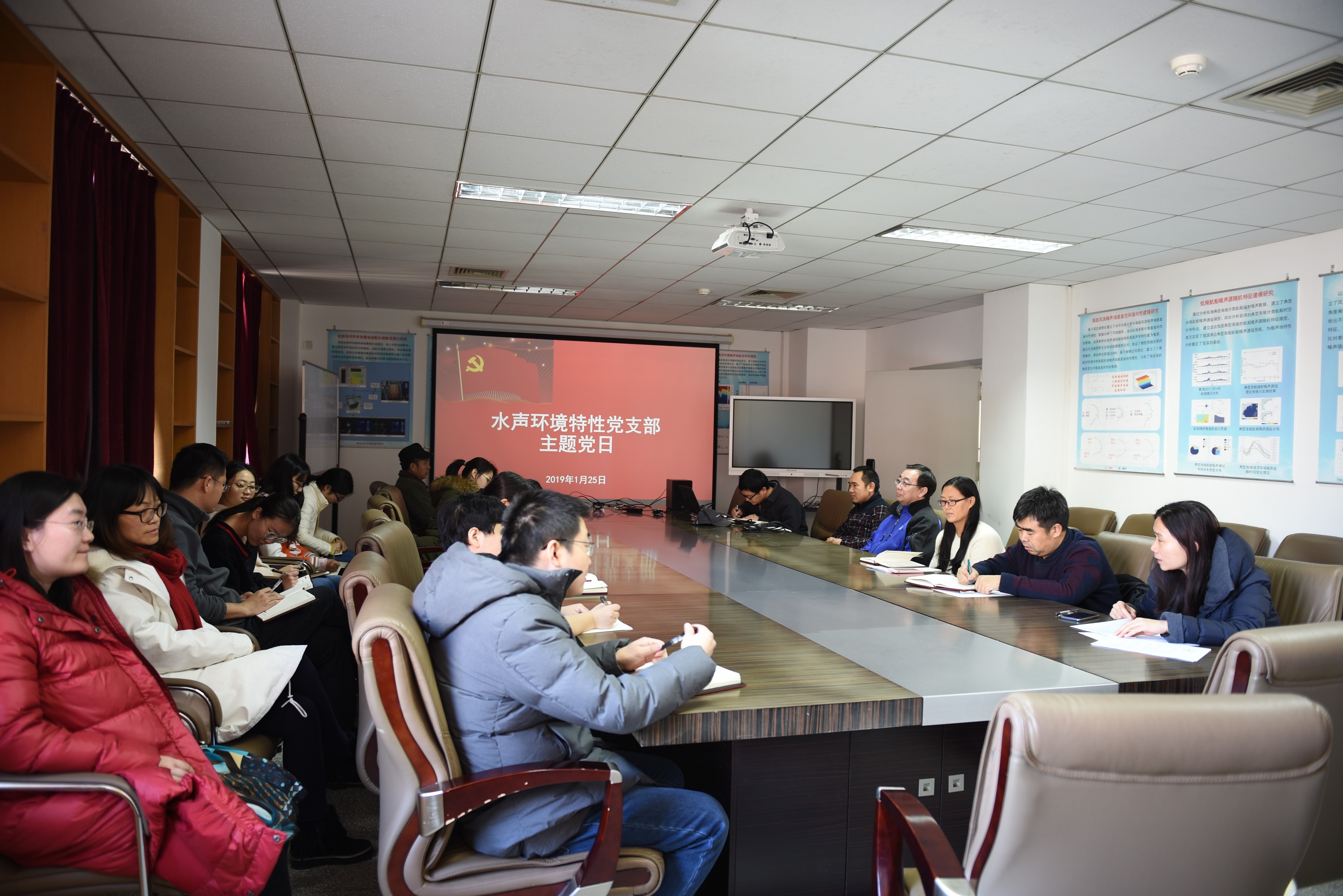 2019年1月25日,水声环境特性党支部在yx06永兴彩票集团德昭北楼416组织主题党日活动。24名党员参会观看录播视频,学习习近平总书记在改革开放40周年大会上的讲话。