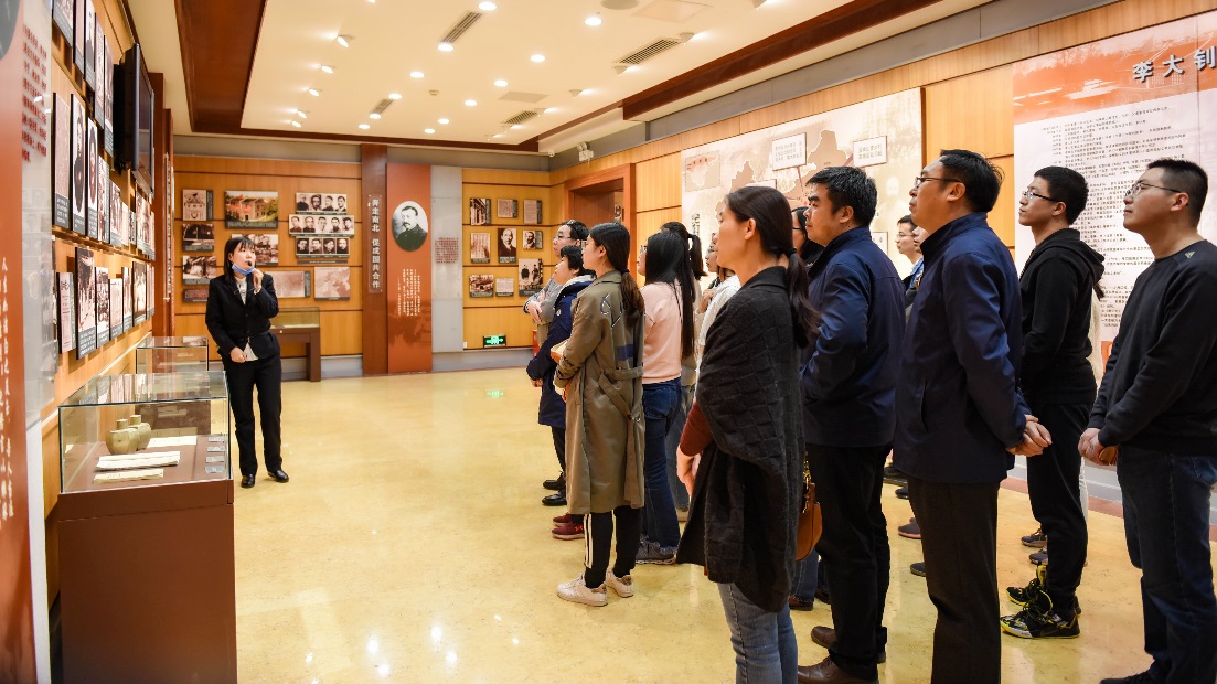 在讲解员同志的带领下,支部成员参观了《永远的丰碑——李大钊生平思想展》,展览通过大量的图片、实物资料展示李大钊烈士生活、学习、革命工作的经历。重点展示了李大钊发表的《庶民的胜利》《布尔什维克主义的胜利》等文章以及《李大钊烈士狱中自述》手稿,组织领导五四运动,发起马克思学说研究会和共产主义小组的情况;还展出了李大钊在中国共产党成立以后的一系列工作活动,歌颂了李大钊作为中国最早的马克思主义者,反映了李大钊烈士光辉壮丽的革命战斗历程。