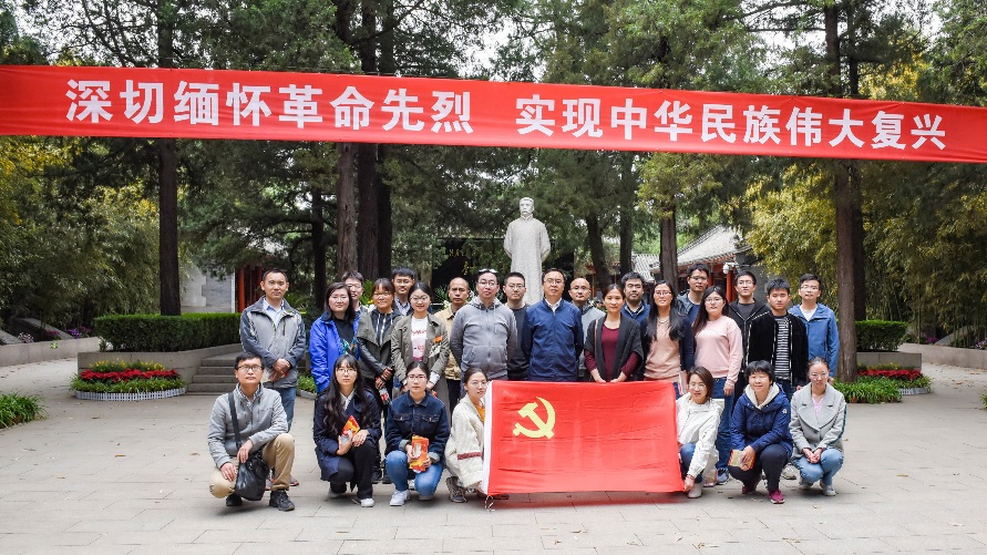 最后,全体支部成员在李大钊同志雕像前合影留念。返程的路上,一幅幅烈士的生前革命照片,一声声同志们铿锵的入党誓词在脑海中萦绕、交织、升华。此次活动号召全体支部成员不忘初心,以习近平新时代中国特色社会主义思想为引领,认真学习党的十九大报告关于科技强国的重要论述,做讲政治、有信念,讲规矩、有纪律,讲道德、有品行,讲奉献、有作为的合格党员。继承烈士遗志并转化成科技创新的动力,不忘科技报国初心、牢记科技强国使命,已经是我们这一代人肩上不可推卸的责任。