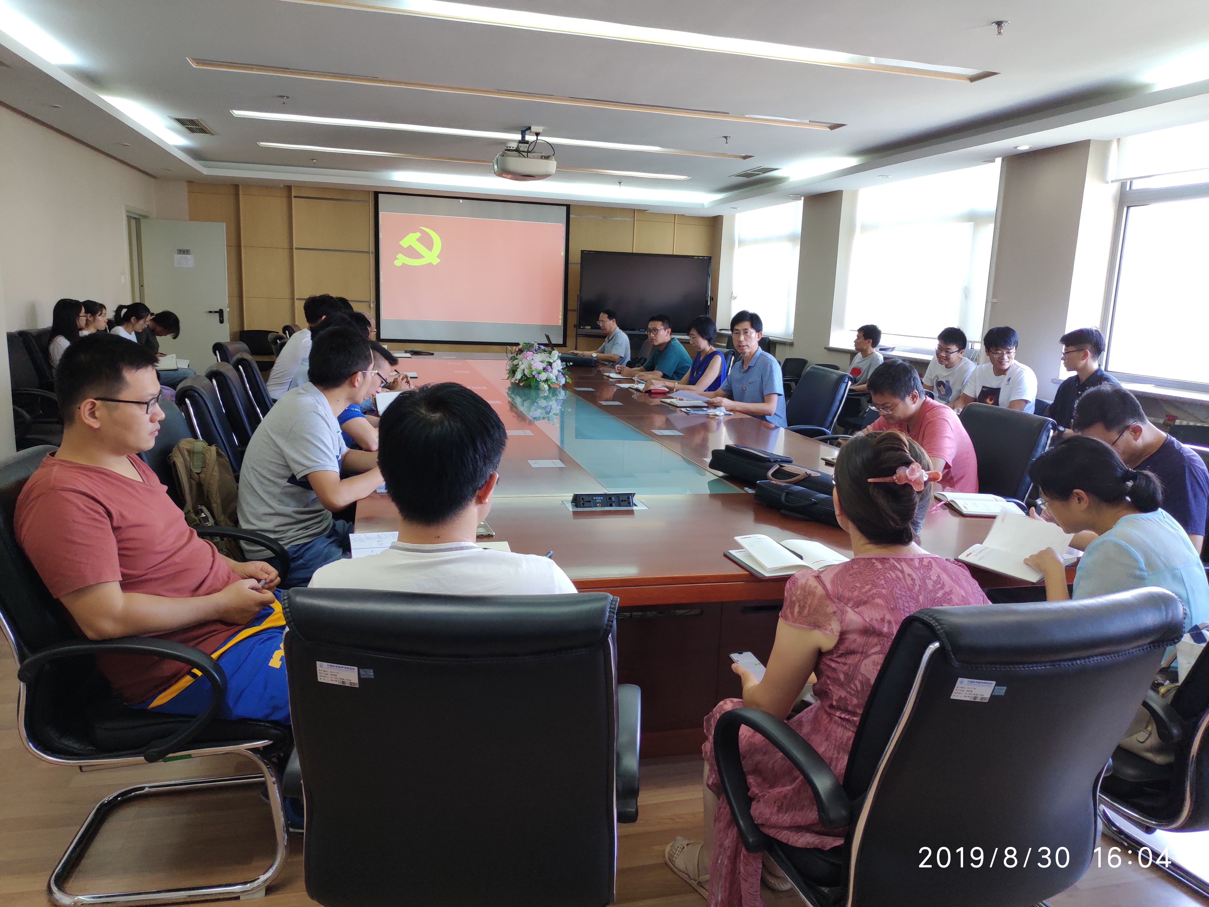 2019年8月30日,超声技术党支部在崇福楼705会议室召开“不忘初心、牢记使命”主题教育专题学习会。所党委副书记、纪委书记李浩然应邀参会,所党委委员王秀明主任为支部党员讲了题为“牢记初心使命,推进科技创新”的党课。会议由支部书记陈德华主持。