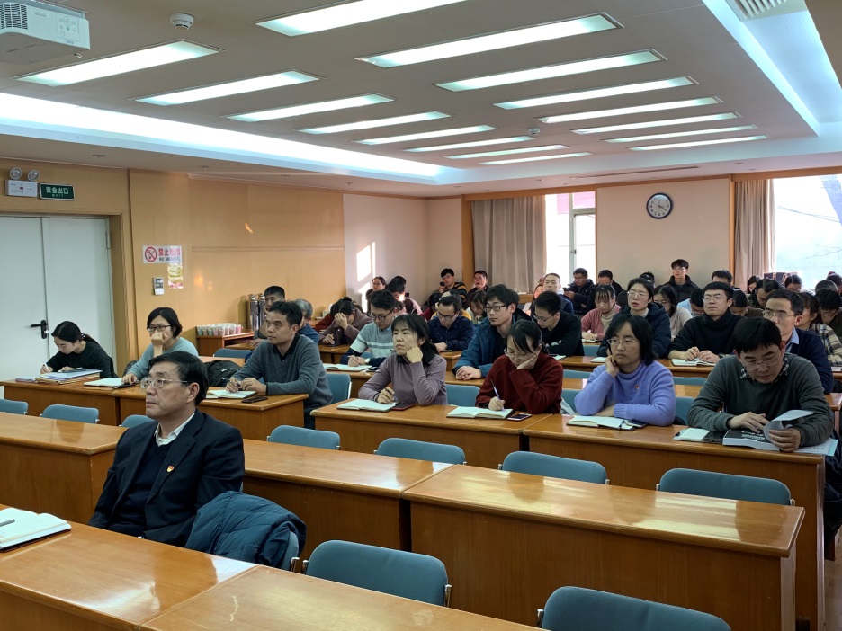 党支部副书记崔杰带领大家共同学习了十九届四中全会精神,从全会的基本内容、所提出的总体目标、我国国家制度和治理体系所具有的优势及应该坚持和完善的任务等方面进行了系统解读,并结合近期时事分享了个人对十九届四中全会精神的理解。