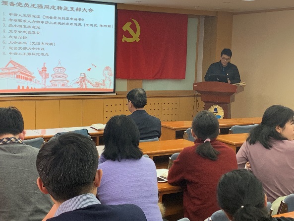 预备党员王强、刘雪莉分别宣读《转正申请书》