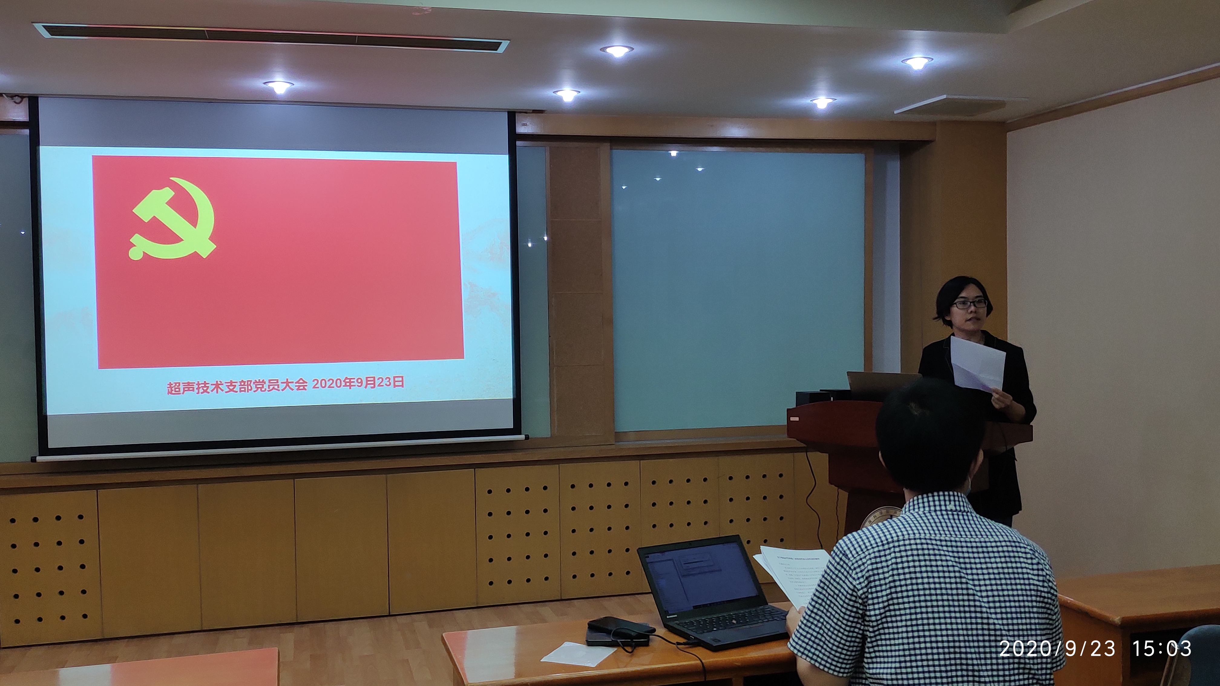 2020年9月23日下午,超声技术党支部在德昭楼218会议室召开党员大会,深入学习贯彻习近平总书记关于厉行勤俭节约、反对浪费餐饮系列重要批示指示精神。所党委委员王小民等67名党员通过线上和线下结合的方式参加了此次专题组织生活会。党支部副书记崔杰主持会议。