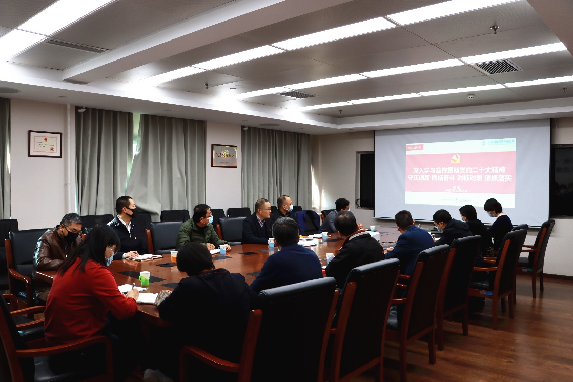 会议集体学习党的二十大精神。倪宏以《深入学习宣传贯彻党的二十大精神,守正创新、团结奋斗,对标对表、狠抓落实》为题,作学习贯彻党的二十大精神专题报告,介绍了二十大报告的各章节内容,强调了报告的重要意义与丰富内涵,特别是结合研究所工作实际,对“实施科教兴国战略,强化现代化建设人才支撑”“坚定不移全面从严治党,深入推进新时代党的建设新的伟大工程”等专章进行了重点解读,同时传达了《中共中央关于认真学习宣传贯彻党的二十大精神的决定》要求,介绍了参加中科院传达学习党的二十大精神会议情况,传达了侯建国院长在会上的讲话精神与对学习党的二十大精神的相关要求,通报了研究所认真学习宣传贯彻党的二十大精神相关工作开展情况,并对持续做好党的二十大精神学习宣传贯彻进行了部署。