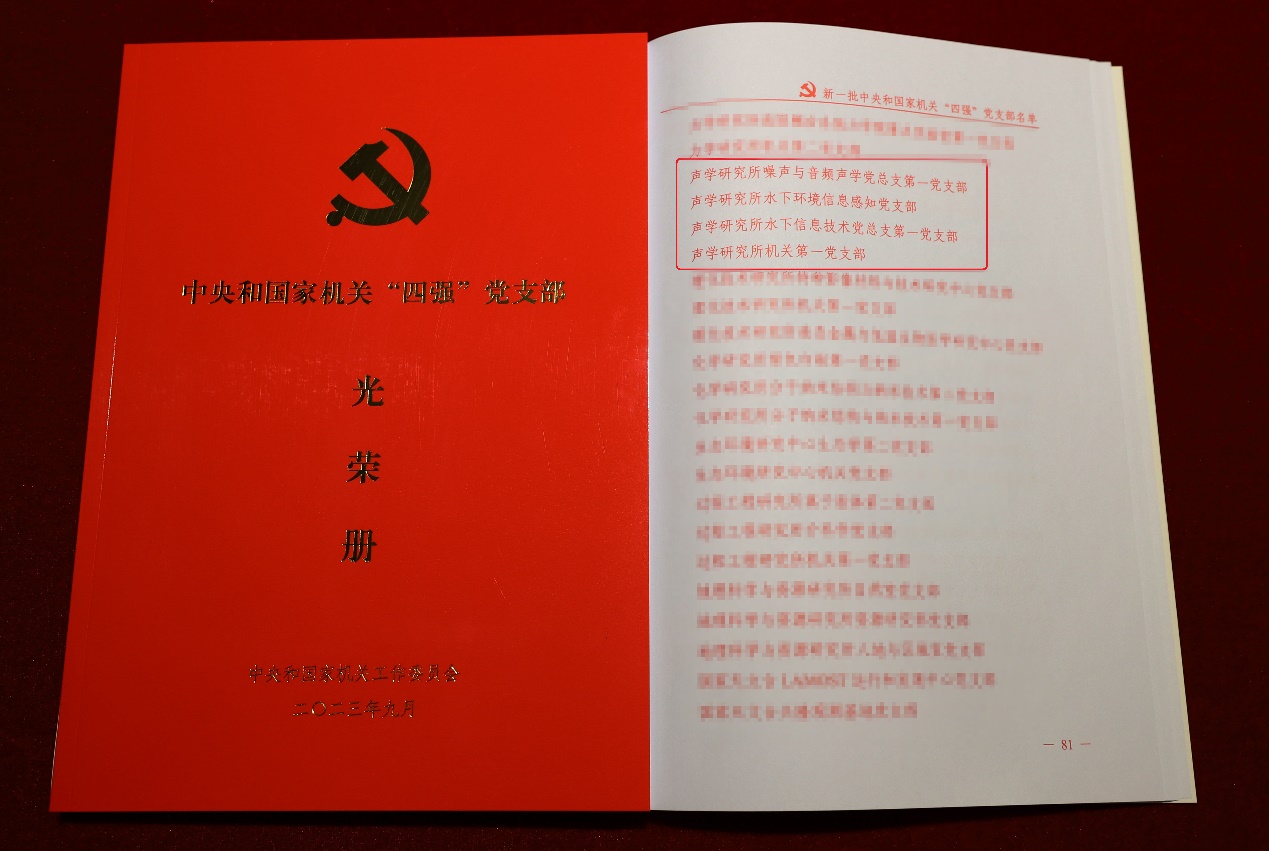 近日,中央和国家机关工委印发《关于命名中央和国家机关“四强”党支部的决定》,yx06永兴彩票集团噪声与音频声学党总支第一党支部、水下环境信息感知党支部、水下信息技术党总支第一党支部、机关第一党支部等四个党支部被命名为新一批中央和国家机关“四强”党支部。yx06永兴彩票集团继去年声场声信息党总支第二党支部、超声学党总支第一党支部获此荣誉后,目前已有六个党支部被命名为中央和国家机关“四强”党支部。