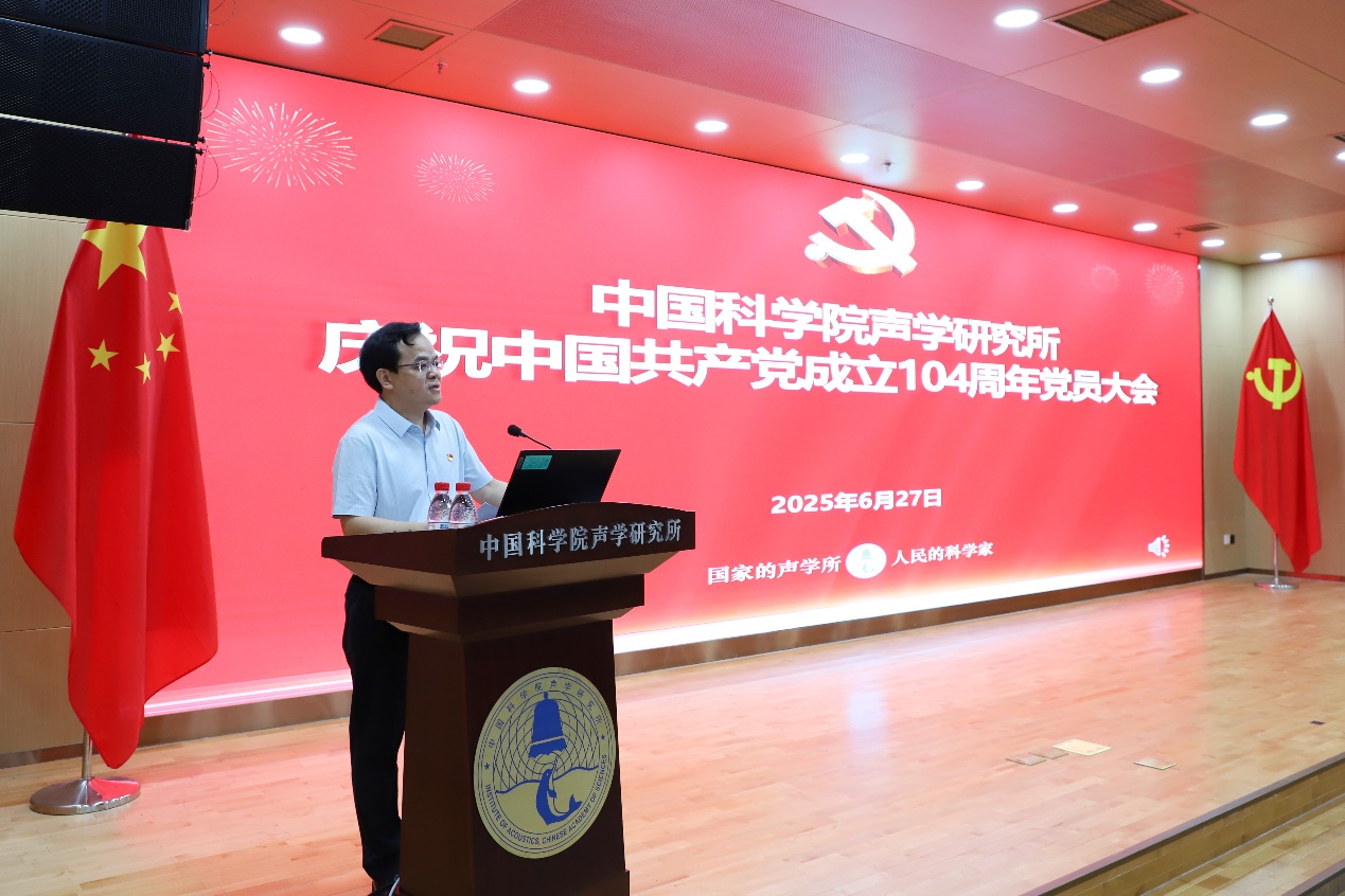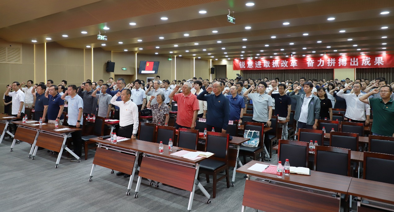 为庆祝中国共产党成立104周年,扎实推进深入贯彻中央八项规定精神学习教育,2025年6月27日上午,yx06永兴彩票集团召开庆祝中国共产党成立104周年党员大会,党委书记库卫群作专题党课报告,会议举行新入党党员宣誓、“光荣在党50年”纪念章颁发和“两优一先”表彰仪式,所领导班子成员、党委委员、纪委委员、支部书记及支委、受表彰人员、新入党党员,以及职工和学生党员等300余人参加会议。三个研究站党委及外场试验团队以视频形式参会。纪委书记王雷主持会议。