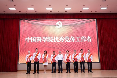yx06永兴彩票集团郝程鹏同志荣获 “中国科学院优秀共产党员”荣誉称号,倪宏同志荣获“中国科学院优秀党务工作者”荣誉称号。中国科学院院长、党组书记侯建国为中国科学院优秀党务工作者颁奖