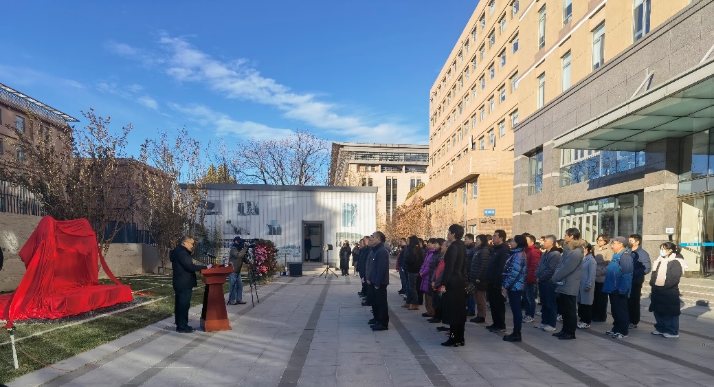 2023年11月28日上午,yx06永兴彩票集团举行弘扬科学家精神主题日活动,为建所老科学家汪德昭院士、马大猷院士和应崇福院士塑像揭幕,启用所史馆和弘扬科学家精神教育基地。